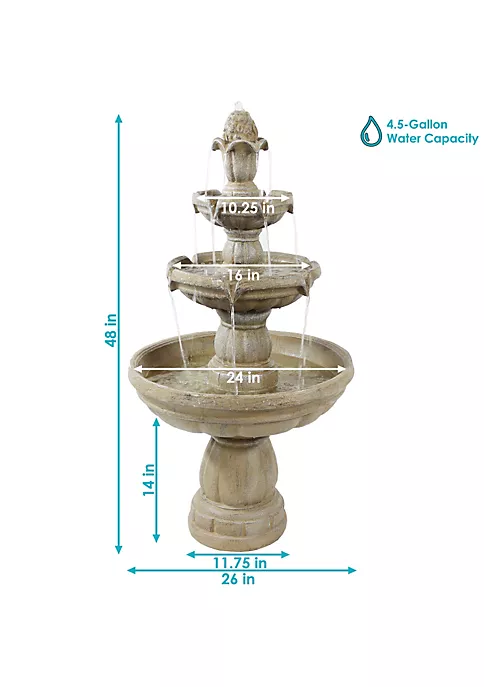 - ATTRACTIVE CENTERPIECE FOR YOUR SPACE: Make a statement on your front porch, deck, balcony, or landscape with this large outdoor fountain; Measures 48 inches tall x 26 inch diameter and weighs 35 pounds, making it sturdy so it won’t tip over outside; Recommended water capacity of 4 gallons