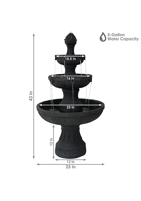 - ELEGANT CENTERPIECE: Large water fountain weighs 40 pounds and measures 43 inches tall x 25 inch diameter, making it a stunning centerpiece in your courtyard, porch, garden, or landscape; Recommended water capacity of 4-5 gallons