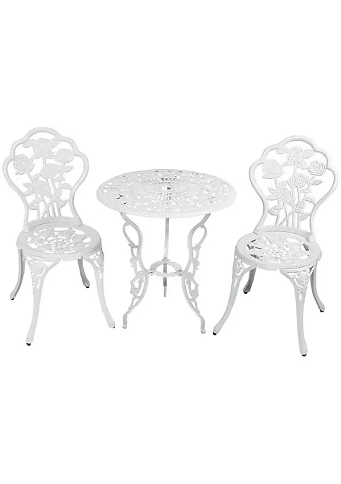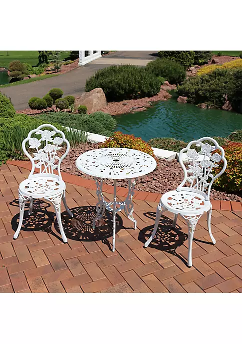- FURNITURE DIMENSIONS: Each chair is 14.5 inches wide x 13.5 inches deep x 32.5 inches high, 16 inch seat height, weighs 13 pounds; Table has a 24 inch diameter x 26 inches high, weighs 14 pounds with a 209 pound weight capacity