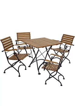 Budget ๐ Deluxe European Chestnut 5-Piece Folding Patio Bistro Dining Set by Sunnydaze Decor โญ