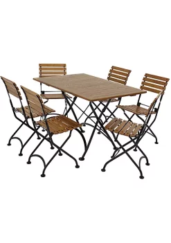 Discount ๐ Essential European Chestnut 7-Piece Folding Patio Dining Set by Sunnydaze Decor ๐ฅฐ