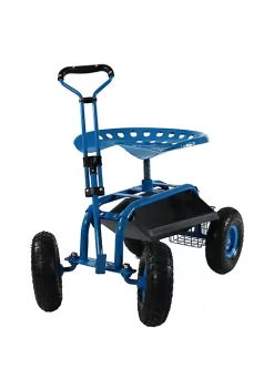 Outlet โค๏ธ Steel Rolling Garden Cart with Extended Swivel/Basket – Blue by Sunnydaze Decor โญ