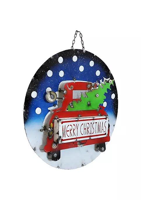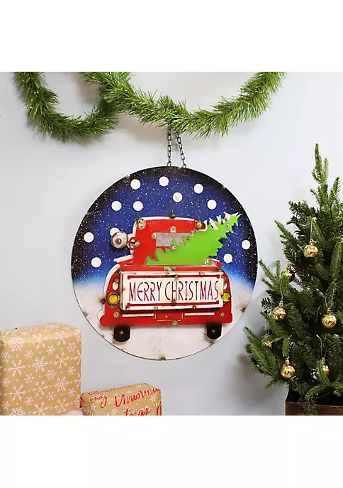 - HANG IT ANYWHERE: This Christmas metal wall art measures 22.75″ W x 22.75″ H x 2.75″ D. It weighs 5.2 lbs. The sturdy 3″ L chain allows the festive holiday sign to be hung from a tree, wall or in a window.