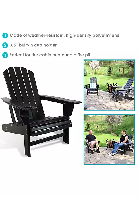 - COMFORTABLE SIZE: Each Adirondack chair measures 22.75″ W x 31″ D x 36.25″ H, has a 300 lb weight capacity, and weighs 43 lbs. Each armrest measures 5″ W x 28.75″ D x 21″ H. The seat is 21″ W x 17.75″ D with a 32.5″ H back.