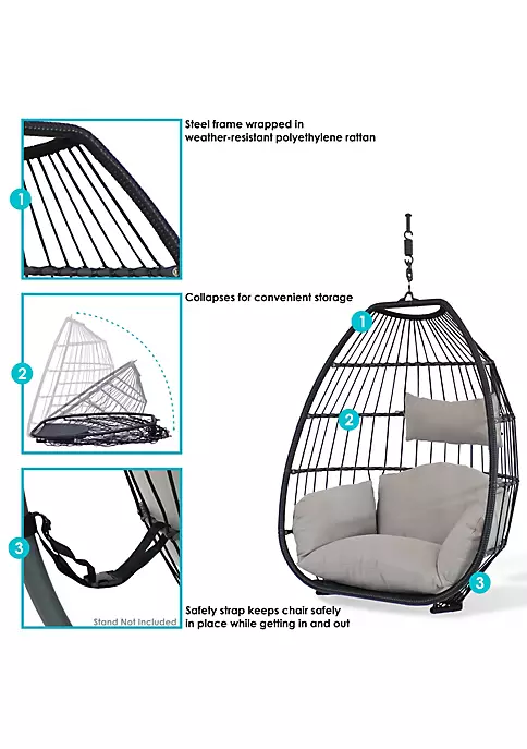 - Egg Chair;Seat Cushion;Headrest Pillow;Chain;Safety Strap;Pin;Extension Spring;Carabiner