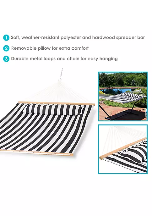- VERSATILE USE: Portable hammock can be tied between trees, poles, or be used with a 12-15 foot stand (Stand not included). Can also be used as a replacement hammock