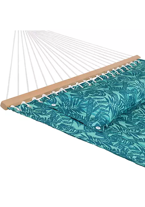 - ROOM FOR TWO: Overall hammock Dimensions: 128 inches long x 54 inches wide; Weighs 6.5 pounds; Hammock bed: 75 inches long x 54 inches wide; Hammock pillow: 42.75 inches long x 11.5 inches wide; Weight capacity: 450 pounds; Share this wide hammock with another person or simply enjoy the extra elbow room. This heavy-duty hammock is built to handle extra weight without any fabric ripping or tearing.