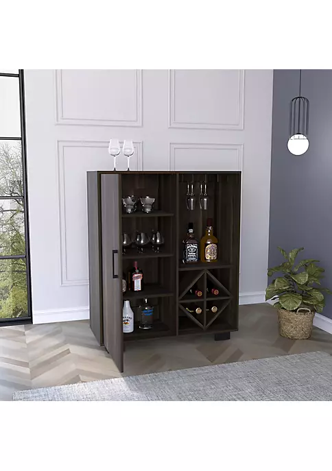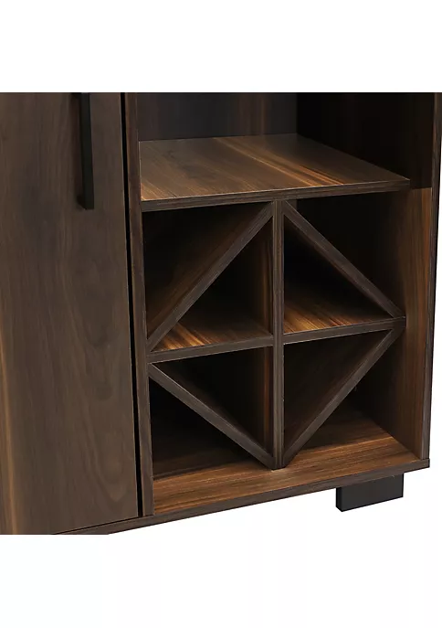 - AMPLE STORAGE FOR BAR NECESSITIES: This accent wine cabinet measures 36″ W x 15.25″ D x 43″ H overall, weighs 91.5 lbs, and holds up to 185 lbs. The wine bottle rack measures 15.75″ W x 15″ D x 16″ H to hold 8 bottles. The wine glass rack area measures 15.75″ W x 13.25″ D x 23.25″ H (to top) or 22″ H (to bottom of glass rack). The top 3 shelves in the cabinet measure 18.25″ W x 13.25″ D x 9.5″ H and hold 20 lbs each. The bottom cabinet shelf measures 18.25″ W x 14.5″ D x 9.5″ H and holds 40 lbs.