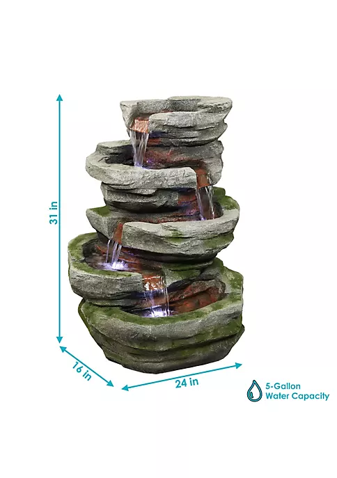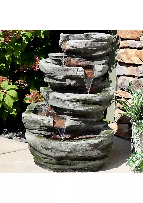 - BEAUTIFY YOUR SPACE: This rock water fountain is crafted to bring the beauty of nature to your front porch, deck, balcony, and landscape. It measures 24 inches wide, 31 inches tall, and 16 inches deep. It also weighs 32 pounds, making it sturdy so it won’t tip over outside.