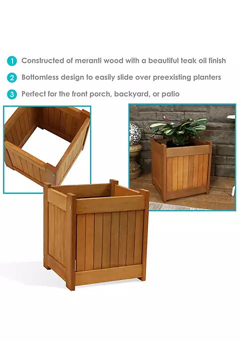 - IDEAL SIZE FOR PATIO: 16 inches wide x 15.75 inches deep x 18 inches tall; Weighs 28.6 pounds; 14.25-inch inner width x 14-inch inner depth x 17-inch inner height; Planter box is perfect growing a variety of plants, including flowers, herbs, vegetables and all kinds of greenery