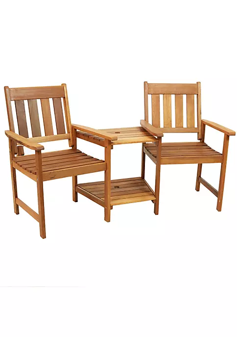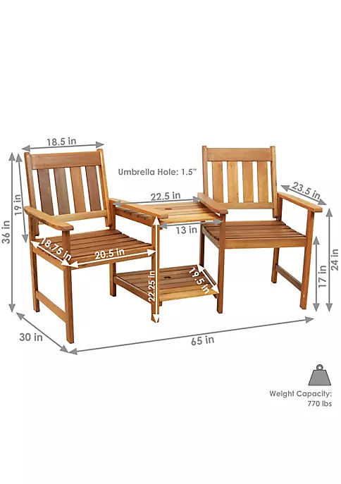 - PERFECT SIZE FOR THE PATIO: Connected chair and table set fits nicely on the patio or deck; 65″ W x 30″ D x 36″ H; Weighs 46 lbs; Chair weight capacity: 350 lbs each; Table is 13″ W (front) and 22.5″ W (back) x 19.5″ D x 22.25″ H; Table weight capacity: 220 lbs; overall weight capacity: 770 lbs.