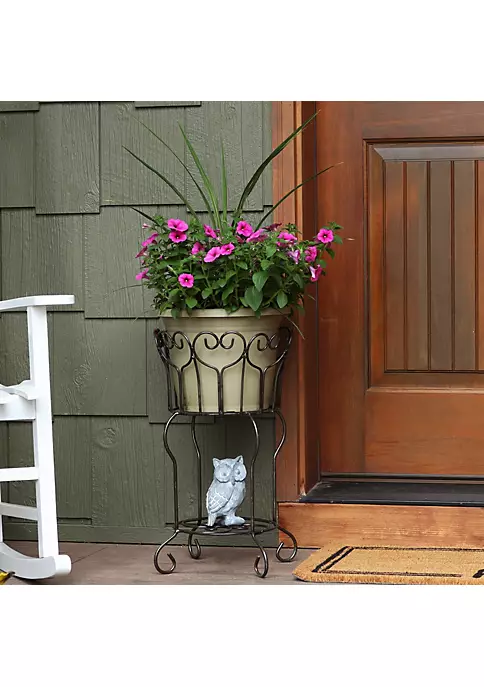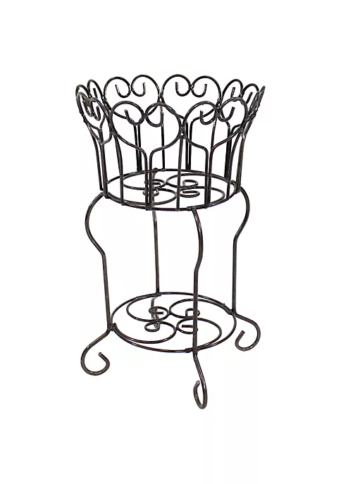 Proudly display potted plants and flowers with this attractive plant stand. It features a durable steel design with a unique heart-shaped scrolling design along the top of the plant stand. Perfect for indoor or outdoor use, this planter container will add a touch of charm and style to the front porch, patio, sunroom, or living room.