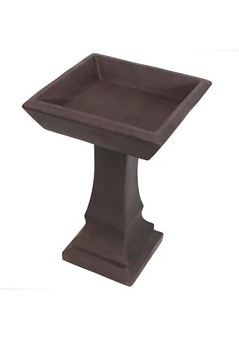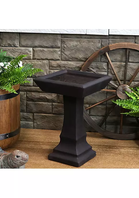 - PERFECT ACCENT SIZE: This square bird bath adds a stylish touch to any outdoor space. It is perfect for the patio, deck, yard or garden. The unique bird bath measures 15.25 inches square x 23 inches tall; Base: 9.5 inches square x 19.25 inches tall; Bath basin: 15.25 inches square x 2.25 inches tall; weighs 20.2 pounds; The water capacity is 0.5 gallon.