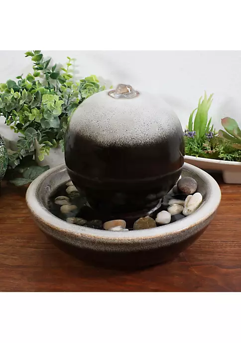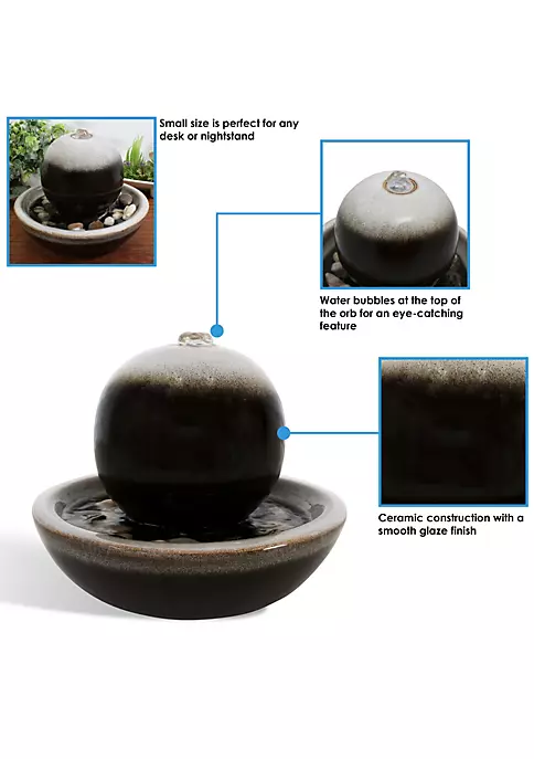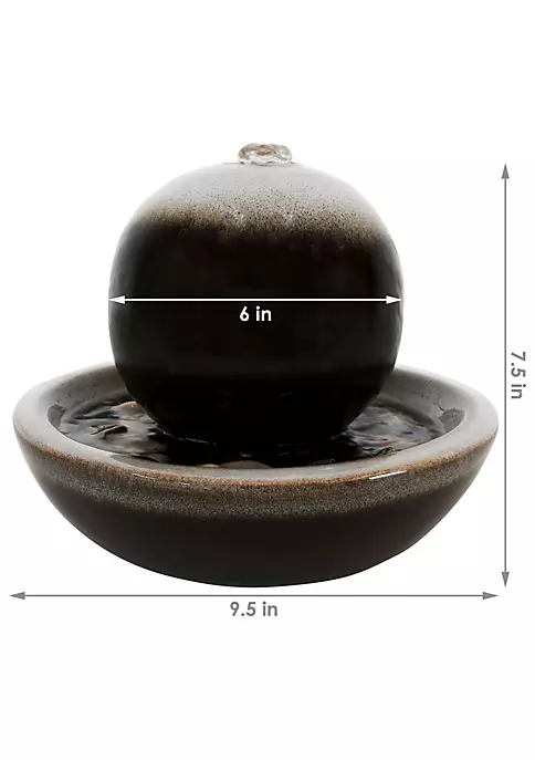 - PEACEFUL TABLETOP WATER FEATURE WITH MODERN STYLE: 9.5 inches diameter x 7.5 inches tall; Weighs 5.2 pounds; Water capacity: 32 ounces; Whisper quiet with no pronounced water sounds