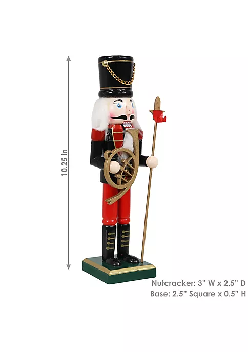 - PERFECT FOR DESK OR SHELF: This indoor Christmas nutcracker figure is 3″ W x 2.5″ D x 10.25″ H with a 2.5″ square x 0.5″ H base. It weighs 0.5 lbs. This indoor accent will be the perfect addition to your kitchen counter, dining room table, bookshelf and other places where you want to add some Christmas cheer.
