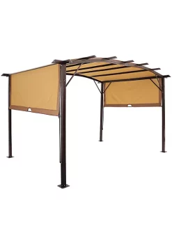 Promo ✔️ 9 ft x 12 ft Metal Arched Pergola with Retractable Canopy – Tan by Sunnydaze Decor 🛒