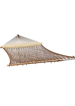 New โ Large Polyester Rope Hammock with Spreader Bar and Pillow – Brown by Sunnydaze Decor โ๏ธ