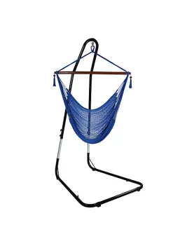 Outlet ๐ Extra Large Hammock Chair with Adjustable Steel Stand – Blue by Sunnydaze Decor โ๏ธ