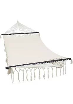 Promo ๐ฅฐ 2-Person Woven Rope Hammock with Spreader Bars and Fringe – Cream by Sunnydaze Decor ๐