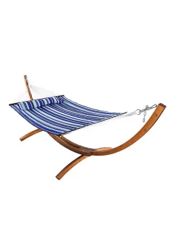 Best Sale 🔔 Large Quilted Hammock with Curved Wooden Stand – Catalina Beach by Sunnydaze Decor 🥰