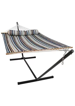 Brand new 🌟 Large Quilted Hammock with Spreader Bar and Pillow – Khaki Stripe by Sunnydaze Decor 🔥