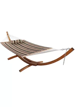 Buy โ 2-Person Quilted Hammock with Curved Wooden Stand – Sandy Beach by Sunnydaze Decor ๐