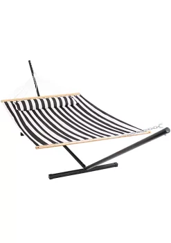 Budget ๐ 2-Person Quilted Fabric Hammock with Steel Stand – Black/White by Sunnydaze Decor ๐