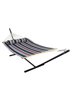 Budget ๐งจ 2-Person Quilted Hammock with Universal Steel Stand – Red Stripe by Sunnydaze Decor โ