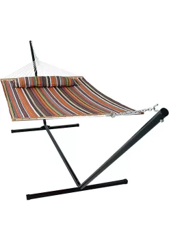 Buy ๐ 2-Person Quilted Fabric Hammock with Steel Stand – Mountainside by Sunnydaze Decor โญ