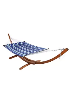 Deals ๐ Large Quilted Hammock with Curved Wooden Stand – Catalina Beach by Sunnydaze Decor ๐