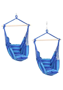 Deals โญ Cotton Hammock Chair with Cushion – Oasis Ocean Breeze – Set of 2 by Sunnydaze Decor ๐