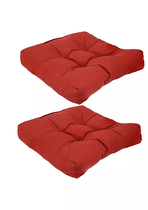 - IDEAL FOR PATIO CHAIRS: These tufted patio chair cushions are ideal for enhancing brand-new indoor and outdoor chairs or replacing old, worn cushions for an instant style refresh. The patio tufted cushions measure 20 inches square x 2.5 inches thick. Each cushion weighs 1.6 pounds.