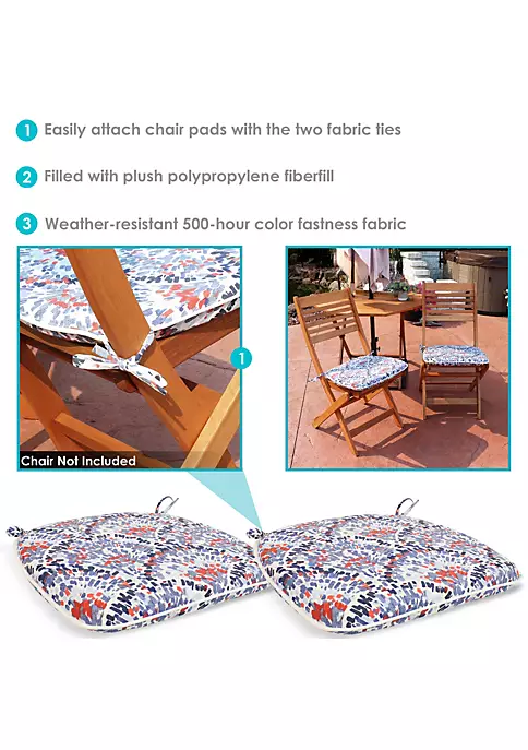 - FITS A VARIETY OF CHAIRS: These chair cushions measure 16.25″ L x 13.5″ W at top (16.25″ W at bottom) x 1.75″ thick and each cushion weighs 0.6 lbs. The 11.75″ long ties make it easy to attach to a chair. These stylish seat cushions will add comfort to a variety of dining and lounge chairs.