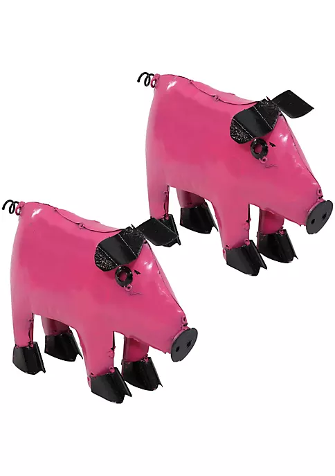- Metal farmhouse decor: These outdoor pig statues are perfect for the porch, entryway, or sunroom. Each piece of animal metal garden art measures 4.25″ W x 11.25″ D x 8″ H and weighs 0.8 lbs.