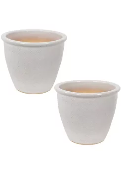 Best Sale ✔️ 11 in Ocean Villa Glazed Ceramic Planter – Pearl – Set of 2 by Sunnydaze Decor 🎉