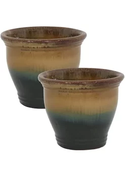 Best Pirce 🥰 11 in Studio Glaze Ceramic Planter – Forest Lake Green – Set of 2 by Sunnydaze Decor 🔥