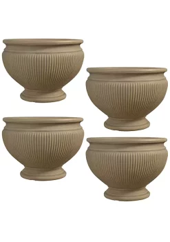 Buy 🔔 16 in Elizabeth Ribbed Urn Polyresin Planter – Beige – Set of 4 by Sunnydaze Decor 🌟