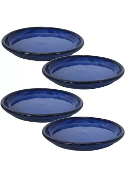 Cheap ❤️ 12 in Glazed Ceramic Flower Pot/Plant Saucer – Blue – Set of 4 by Sunnydaze Decor 🥰