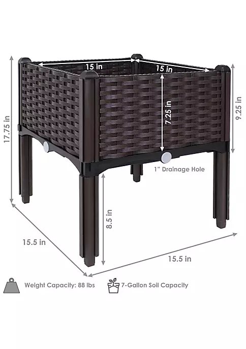 - SQUARE RAISED BEDS: Each individual square plastic planter box measures 15.5″ W x 15.5″ D x 9.25″ H without legs, has an 88 lb weight capacity, and weighs 5.2 lbs. With legs, each box is 17.75″ H. The overall size and shape of your garden bed depends on how it is assembled.