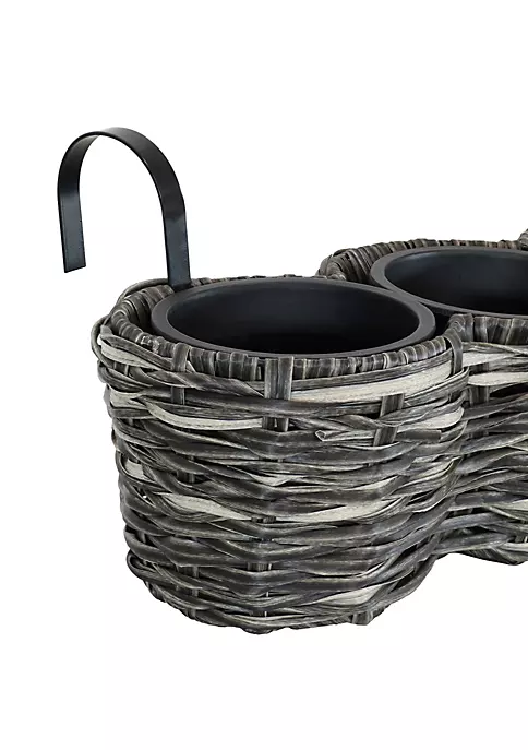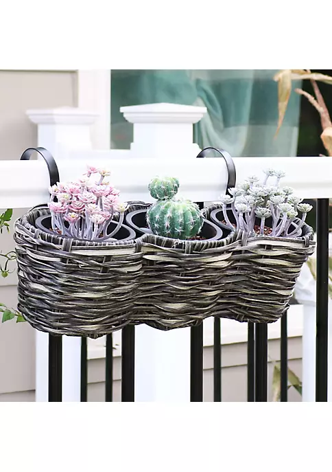 - PERFECT SIZE: Overall planter dimensions: 18 inches wide x 7 inches deep x 5.5 inches tall; Plastic liners (3 total): outer dimensions: 5-inch top diameter (4-inch bottom diameter) x 5 inches tall; Inner dimensions: 4.5-inch top diameter (3.75-inch bottom diameter) x 4.75 inches tall; Weighs 2.2 lbs; Each plastic liner holds up to 1.3 quarts of soil; The hooks are 3 inches tall and designed for use with fences and railings that are 3.25 inches thick and thinner