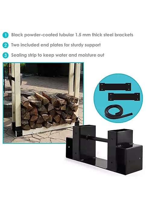 - ADJUST TO ANY SIZE: Each firewood rack bracket is 13″ W x 4″ D x 6″ H. They weigh 6.8 lbs per bracket. The inner 2 x 4 holes measure 1.5″ W x 3.5″ H. Each end plate measures 9.25″ W x 1 mm thick x 2.5″ H and weighs 0.4 lbs. A 49.5″ length of sealing strip is included and can be cut to any desired length. Choose any length or height to fit a large range of face-cord sizes. Easily keep your firewood logs and kindling in a neat pile.