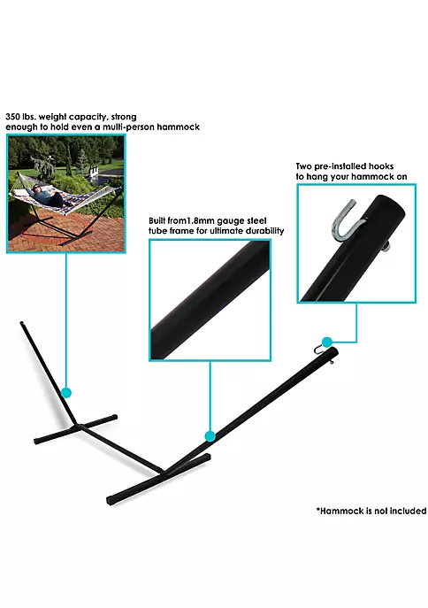 - FITS HAMMOCKS UP TO 11 FEET: 144 inches long x 36 inches wide x 48 inches tall and weighs 25 pounds; 350 pound weight capacity so it can accommodate up to two adults