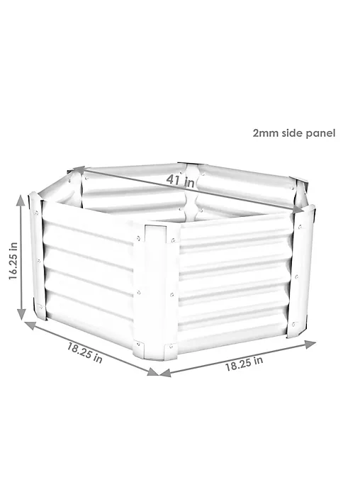 - OPTIMAL OUTDOOR PLACEMENT: Elevated gardening box is 41 inches long (from corner to corner) x 35.5 inches wide (from straight edge to straight edge) x 16.25 inches tall; Weighs 18.6 pounds; Side panels are 18.25 inches wide; Side panel is 2 mm thick; Corner panel is 1 mm thick; Volume: 8.13 cubic feet; Perfect size to place in the backyard, patio, or on the deck