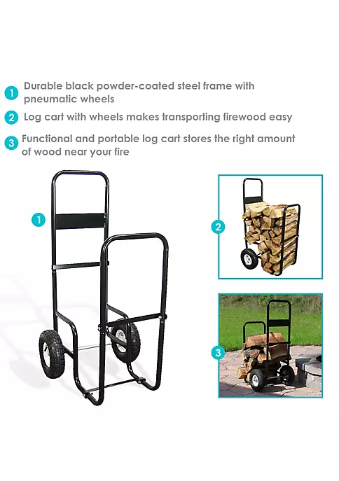 - OVERALL SIZE: Log caddy measures 43 inches tall x 21.5 inches wide x 26 inches deep; 13.5 inches wide without the wheels; Weighs 21 pounds; Firewood transporting accessory is a must-have if you’re looking to cut down on the time it takes to move piles of wood around or make the task less strenuous