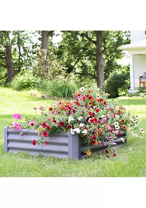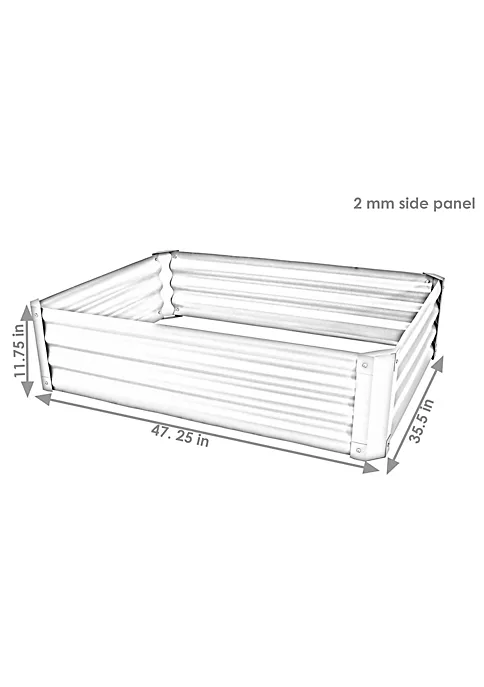 - OPTIMAL OUTDOOR PLACEMENT: Elevated gardening box is 47.25 inches long x 35.5 inches wide x 11.75 inches tall; Weighs 14.8 pounds; Side panel is 2 mm thick; Corner panel is 1 mm thick; Volume: 10.9 cubic feet; Perfect size to place in the backyard, patio, or on the deck