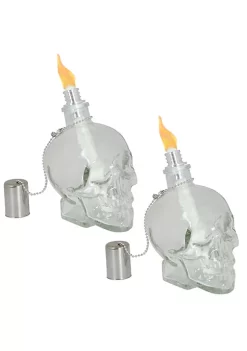 Wholesale 🥰 Glass/Aluminum Grinning Skull Tabletop Torches – Clear – Set of 4 by Sunnydaze Decor 🔥