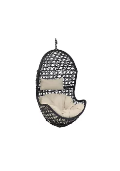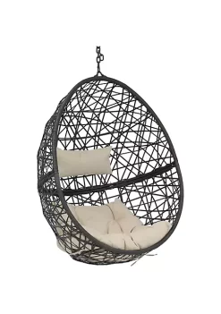Budget 🎁 Black Resin Wicker Basket Hanging Egg Chair with Cushions – Beige by Sunnydaze Decor 🤩