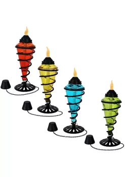 Budget ๐ Swirled Metal/Glass 2-in-1 Outdoor Lawn Torch – Multi – Set of 4 by Sunnydaze Decor ๐งจ