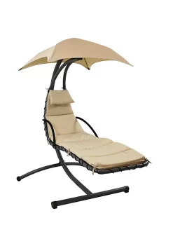 Discount ❤️ Floating Chaise Lounge Chair with Canopy and Arc Stand – Beige by Sunnydaze Decor 🤩