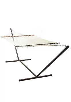 Flash Sale ⭐ 2-Person Polyester/Cotton Rope hammock with Steel Stand – Natural by Sunnydaze Decor 💯